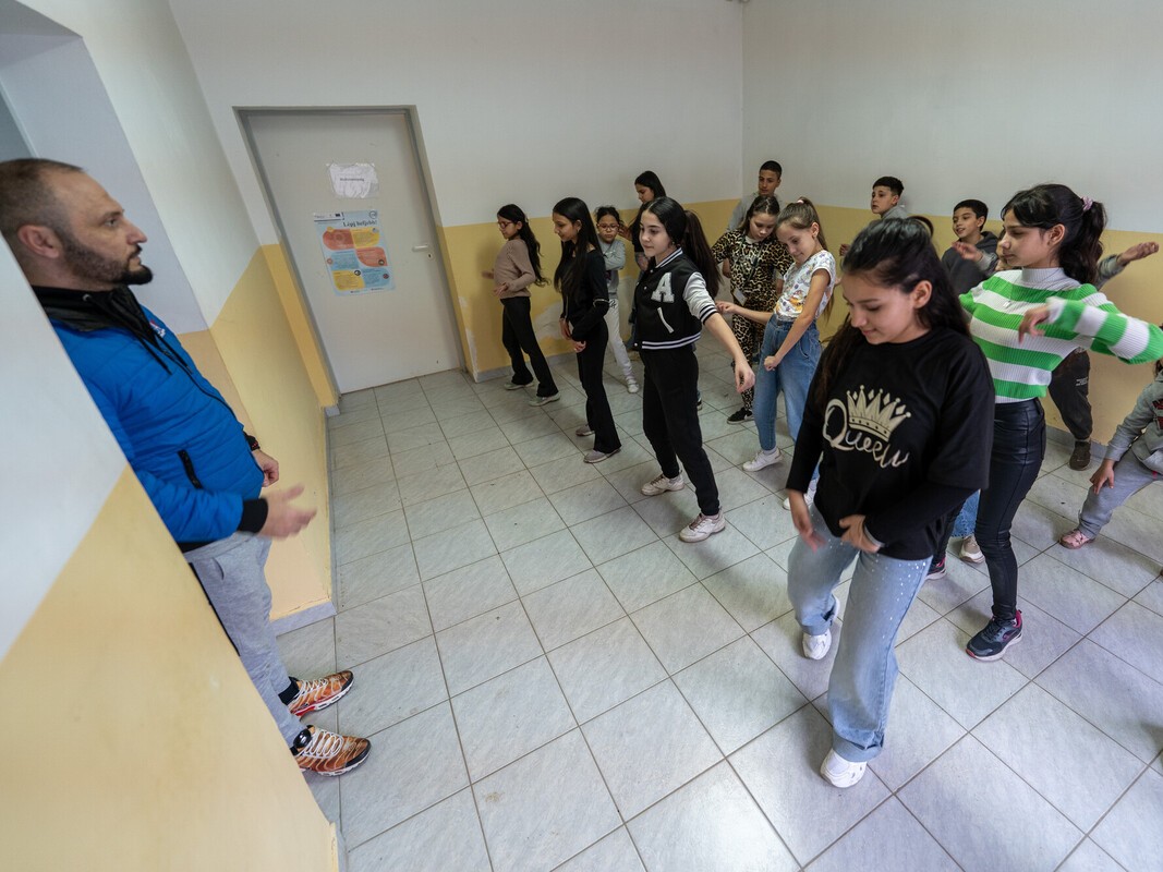 Baji László tánctanár Ózdról érkezik hozzájuk minden héten, és amellett, hogy a legmodernebb táncokat oktatja a gyerekeknek, mozgáskultúrát, illemtant is tanít, mindemellett pedig életvezetési és tanulással kapcsolatos tanácsokkal is ellátja őket. Az órákra 7 és 15 éves kor közötti gyerekek járnak. A kezdetben szétszórt, eltérő mozgási fejlettségű gyerekek néhány hónap után koncentráltan, egymásra és a tanárra figyelve, fegyelmezetten edzenek. A heti egy hivatalos foglalkozás mellett délutánonként összejönnek a Jelenét Ponton, hogy gyakoroljanak. Ilyenkor a nagyobb gyerekek segítik az egészen fiatalokat és a később csatlakozókat, hogy felzárkózzanak a csoporthoz.